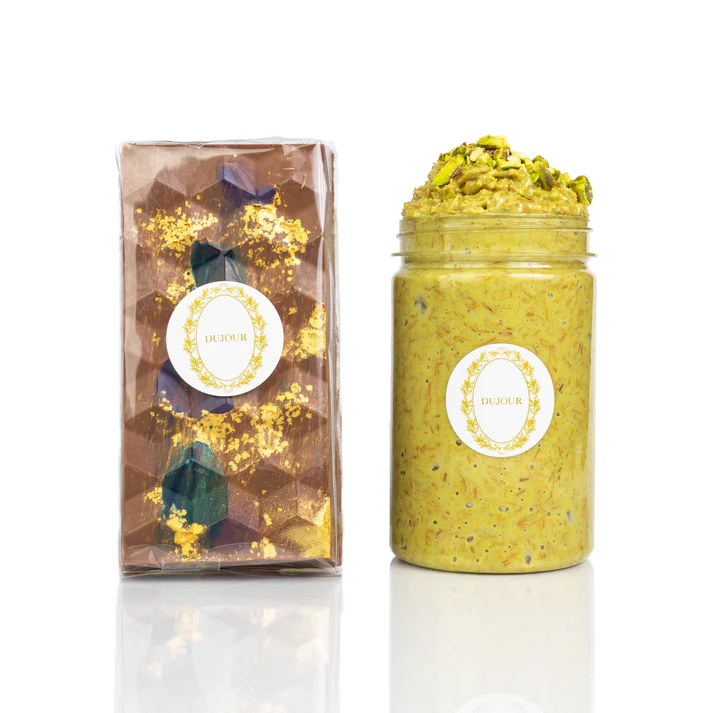 Indulge in the ultimate dessert experience with our Pistachio Knafeh Chocolate Bar & Crunchy Spread Bundle, inspired by the rich, iconic flavors of Dubai. This luxurious set combines silky milk chocolate with a crunchy, nutty pistachio spread to give you a sweet moment you’ll want to relive again and again.