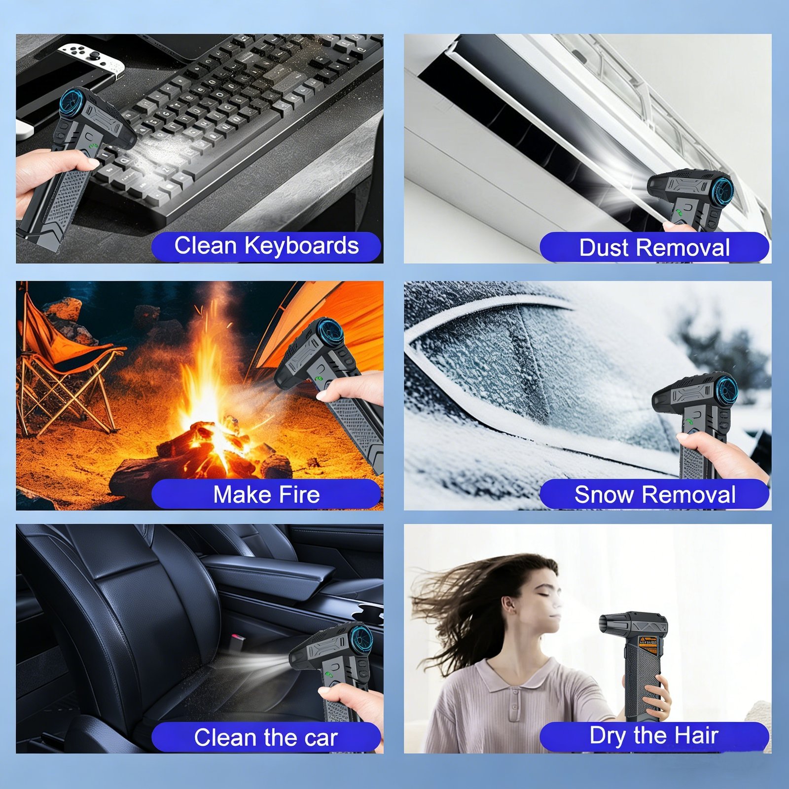 Vers¨¢til¨ªsimo, lo uso para secar dispositivos electr¨®nicos, limpiar teclados, soplar polvo de muebles y even secar el pelo r¨¢pido, multiuso perfecto.