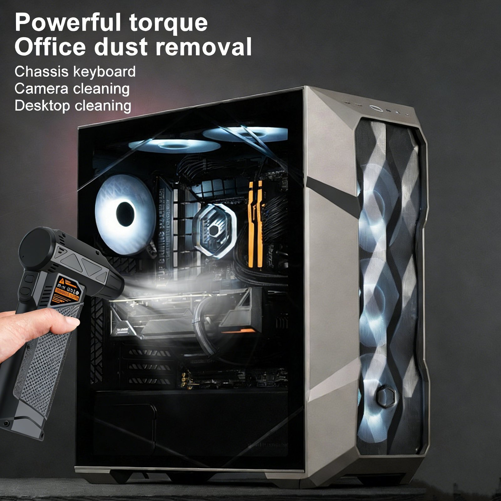 Motor sin escobillas de 400.000 RPM para una potencia de viento extremadamente alta, capaz de soplar polvo, nieve y residuos en segundos con una eficiencia incomparable. Vida útil prolongada del motor, bajo consumo energético y funcionamiento con ruido mínimo, ideal para uso prolongado. Diseño compacto y ligero que se guarda fácilmente en el bolsillo o bolso, con textura antideslizante para un agarre seguro incluso con manos húmedas. Carga rápida Type-C y batería de 8000 mAh que ofrece una autonomía prolongada y recarga en poco tiempo. Función de soplado y succión 2 en 1 para limpieza más completa, ideal para teclados, interiores de coches y componentes de ordenadores. Velocidad de viento ajustable de forma infinita para adaptarse a diferentes necesidades, desde un soplo suave hasta una potencia máxima de 220 km/h. Resistente y duradero, fabricado con materiales de alta calidad que soportan un uso intensivo. Versátil para múltiples usos: limpieza de polvo, eliminación de nieve, encendido de fuegos en campamentos, secado de pelo o superficies mojadas.